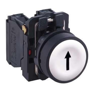 BOTAO 22MM PLASTICO A IMPULSAO COM SETA PRETA 1NA BRANCO