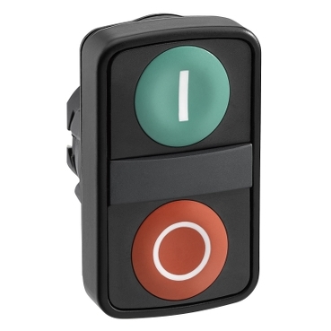 CABECOTE BOTAO 22MM PLASTICO DUPLO COMANDO I O VERDE VERMELHO
